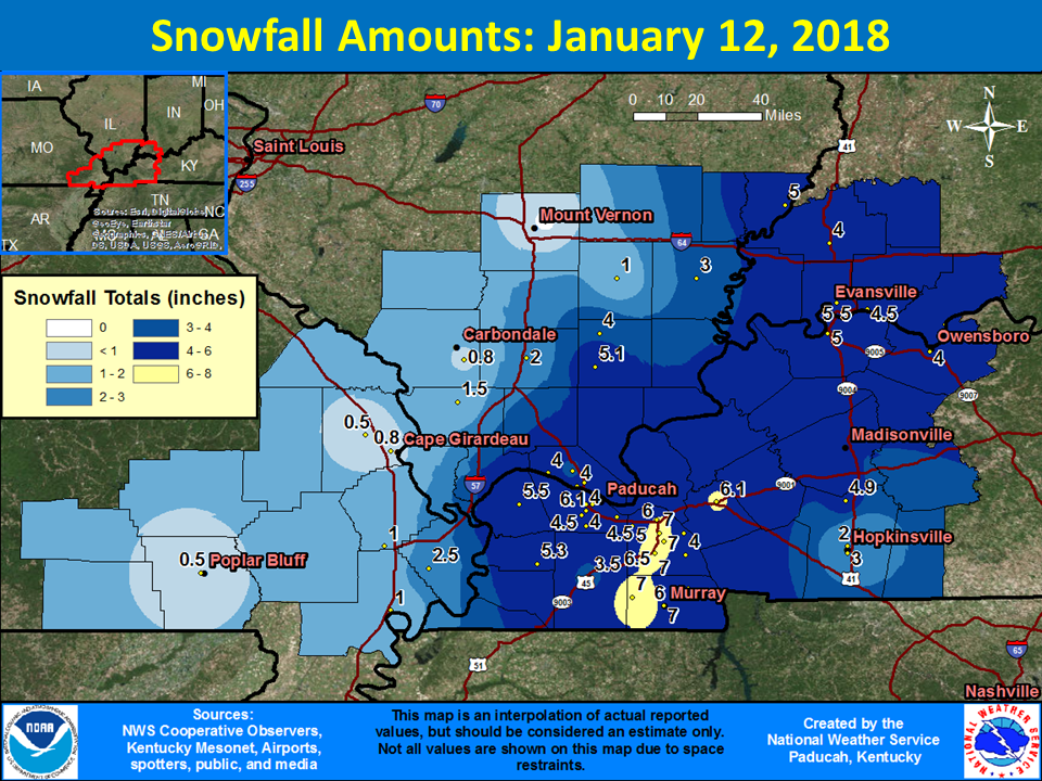 Figure 3: This map is courtesy of the NWS of Paducah and shows the snowfall amounts for the 12th system.