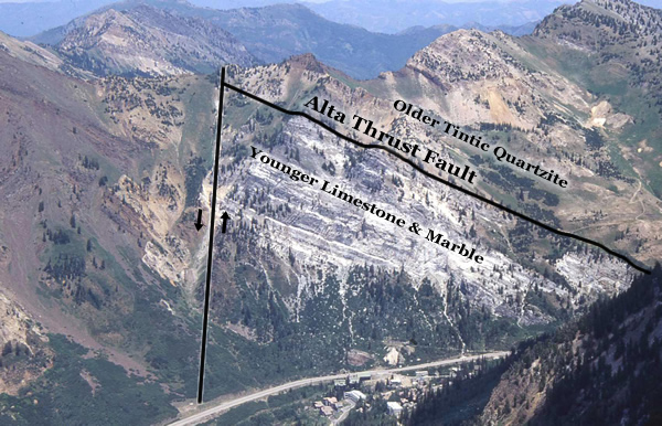 The Western USA is a treasure cove of Geology. The Little Cottonwood Canyon displays rock units that range over 1 billion years in time. This area features schist and gneiss which are metamorphic rocks that are formed by intense heat and pressure that is over 1 billion years old. Beneath that is altering layers of Granite (remains of ancient volcanoes), some limestone for when the area was covered by the sea, and some shale and sandstone for when the area was either near-marine or even a desert. There is also significant glacial till as well. The granite layers in particular are very important for the town of Alta as it is within those layers that prospectors discovered silver which lead to the birth of this town.
