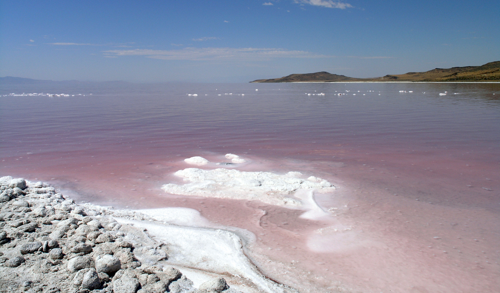 The Great Salt Lake is currently one of the largest saline lakes in the Western Hemisphere. It covers portions of several counties just west of Salt Lake City and Ogden, Utah. Due to the high saline content which is over seven times as much as the ocean, humans can float in the Great Salt Lake. The salinity also impacts the life that can live there. Some parts only algae can survive and in those parts of the Great Salt Lake you can see the lake turn a pink color due to the specialized algae that live there. Brine shrimp and brine flies can also live there as well.