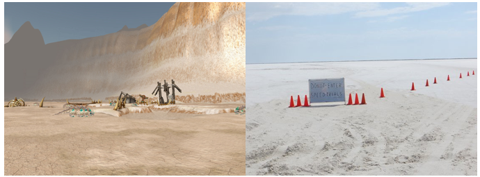 Figure 9: Mirage Raceway in Shimmering Flats/Thousand Needles (WOW) courtesy of wowpedia and the Bonneville Speedway courtesy of travelyourplanet.com