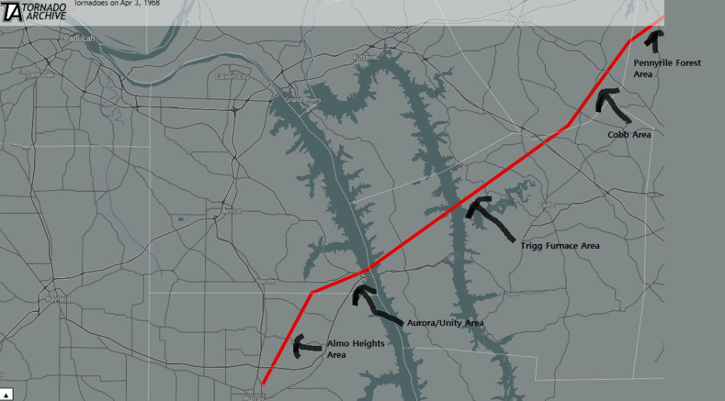 • For those into US History and especially the Civil Rights movement, the assassination of Dr. Martin Luther King Jr. would occur about 6 hours after our tornado dissipated over Northern Christian County. This happened in Memphis, TN in which just 9 hours before the assassination there was a deadly EF/F-3 tornado that formed in the northern part of Memphis metro before moving north and hitting Covington, TN.