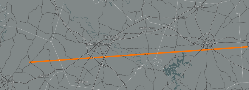 The F-3 tornado track across Logan/Warren Counties as it moved into Barren County, from TornadoProject