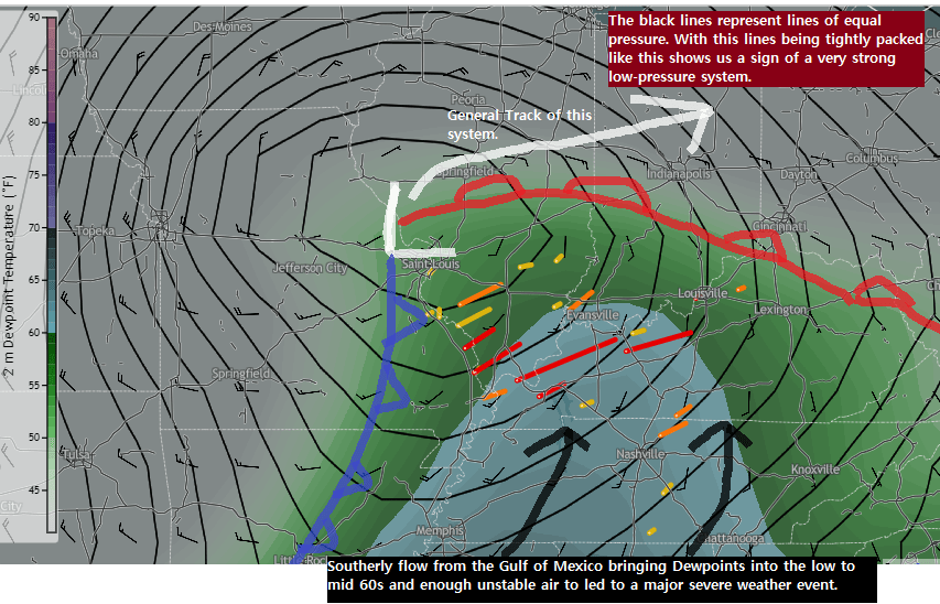 Just over two months after the Clinton, KY F-4 tornado another major low-pressure system moved northwest of the area. Tracking from near St. Louis through NW Ohio, bringing in moist and unstable air into the area. A very strong mid to low-level jet created significant wind shear and the supercelluar storm mode allowed for long-tracked tornadoes.