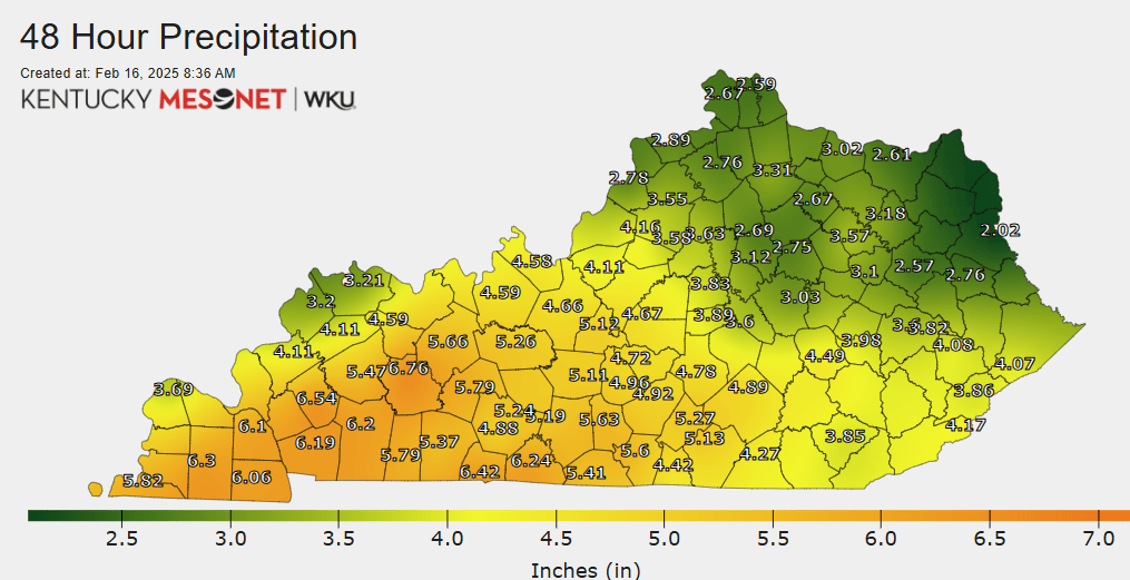 The heaviest rains fell across the Jackson Purchase area and then along and south of US Highway 62. With a widespread 4-7 inches of rain on top of saturated soils, this led to widespread flooding and pockets of significant flash flooding and aerial flooding.